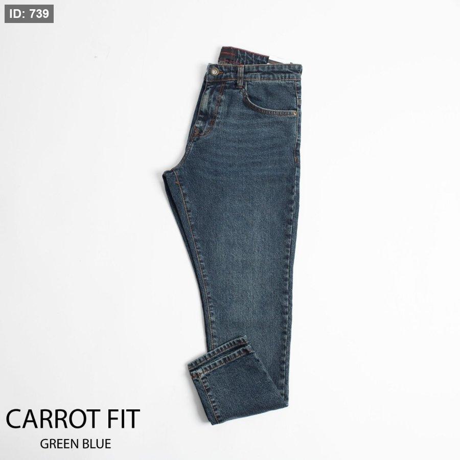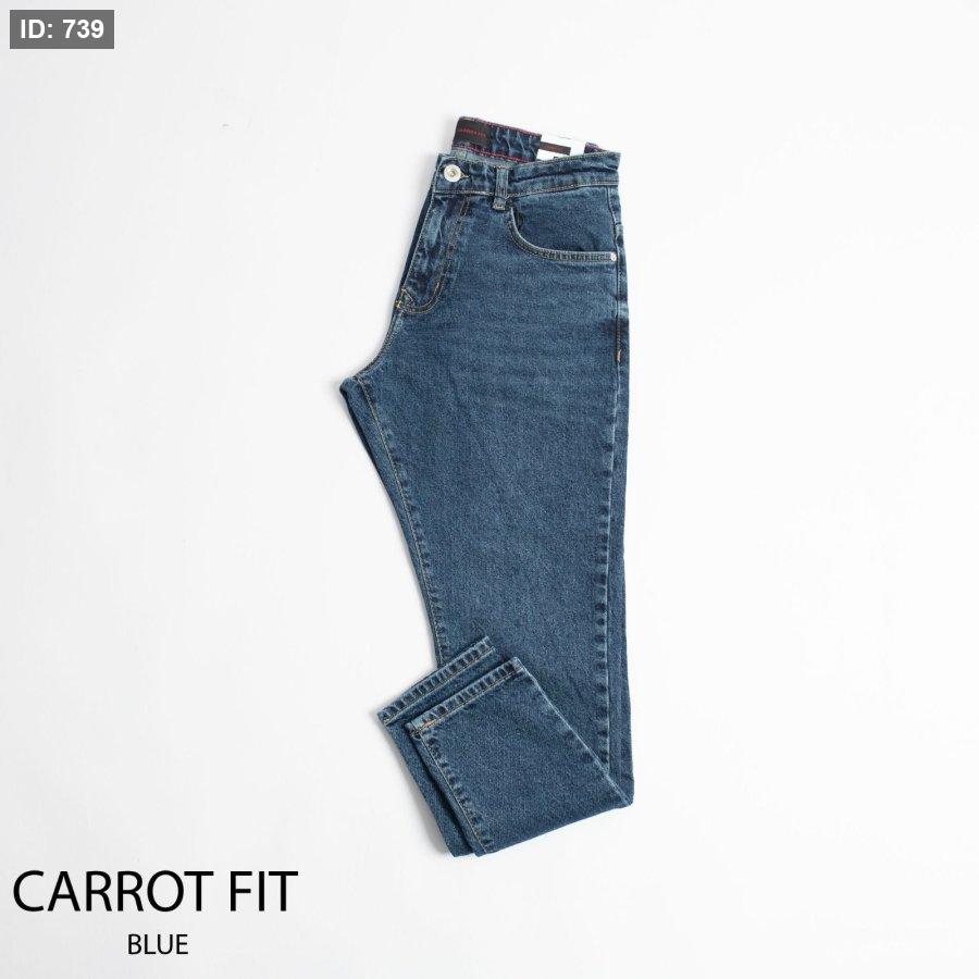 خامة جينز والقالب واسع نوعاً ما ومقصر ومرفع من تحت والخامة جينز مع نسبة غير كبيرة من اللايكرا